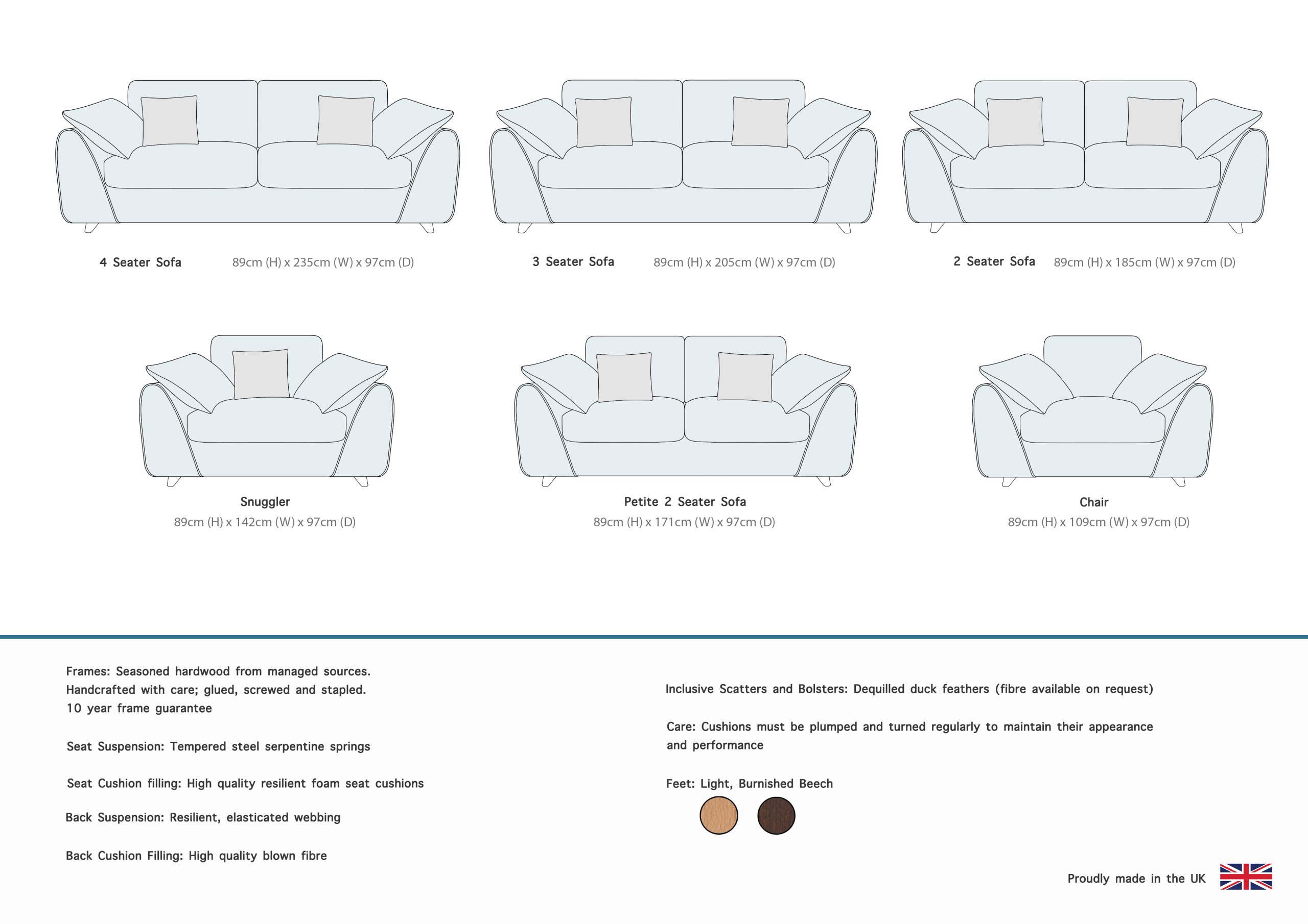 Cushions must be plumped & turned regularly to maintain appearance & performance